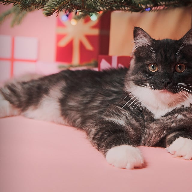 Achten Sie darauf, dass die Lichterketten fest an den Zweigen befestigt sind und keine Kabel herunterhängen, damit die Katze nicht darin hängen bleiben kann. Zur Sicherheit sollten Sie auf Kerzen am Weihnachtsbaum verzichten. Eine gute Alternative zu Lichterketten sind kabellose LED-Lichter, die sich mit einer Fernbedienung an- und ausschalten lassen.